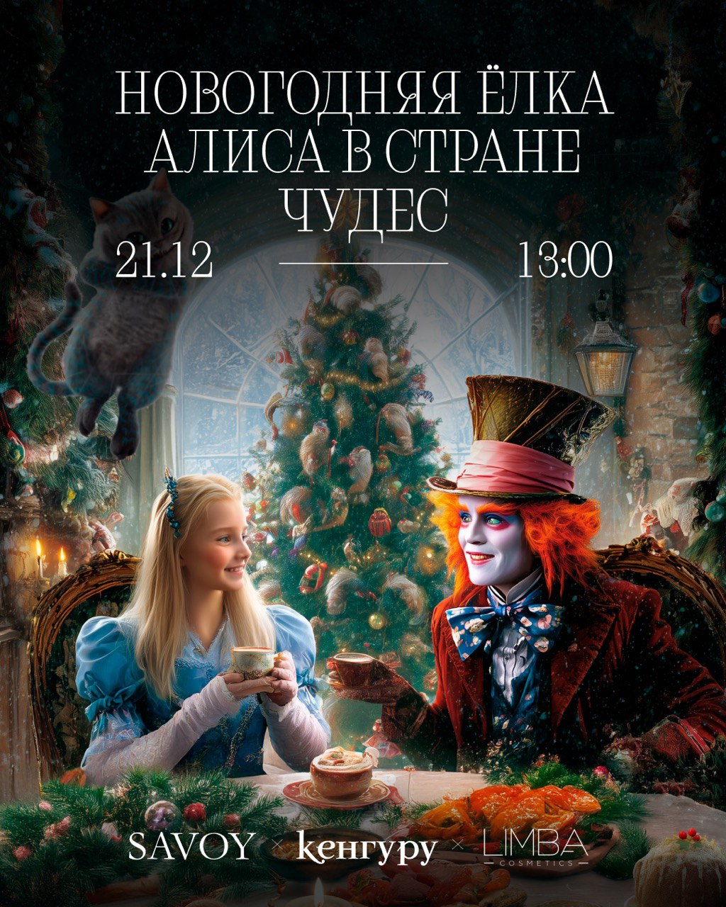 21 декабря исторические залы ресторана Savoy перестанут подчиняться правилам скучного мира «по ту сторону зеркала». Здесь всё будет иначе. Путешествие в страну чудес, единственный в своем роде новогодний приём, созданный по мотивам сказки Льюиса Кэрролла.