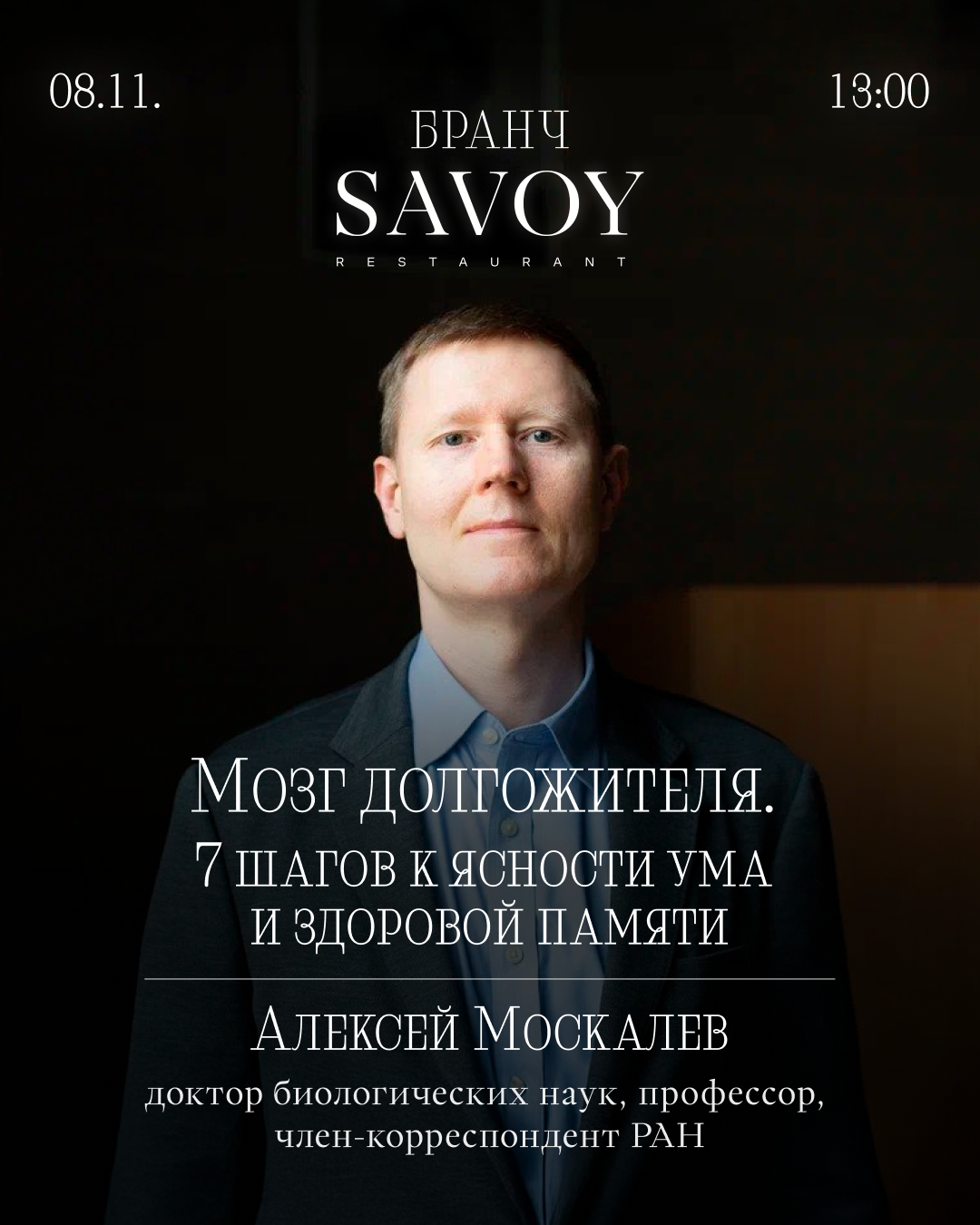 В ресторане Savoy 8 ноября состоится бранч с Алексеем Москалевым: «Мозг долгожителя. 7 шагов к ясности ума и здоровой памяти».