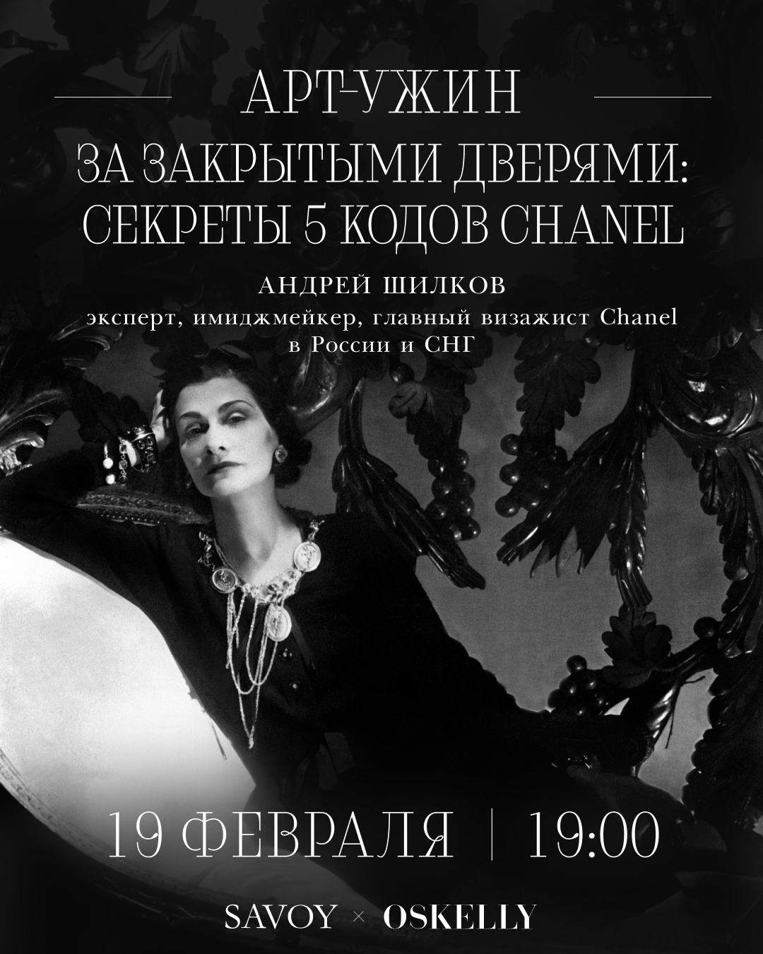 Chanel – один из немногих модных домов, который читается как зашифрованный текст. Каждая деталь здесь имеет значение, от материалов и форм до стежков и пуговиц. Но большинство видит лишь поверхность: логотип, статус, цену. 19 февраля гости арт-ужина в ресторане Savoy получат редкую возможность заглянуть внутрь Дома Chanel – туда, куда обычно не пускают ни клиентов, ни прессу, и погрузиться во внутреннюю систему кодов, смыслов и предметов, которые сделали имя Габриэль Шанель вечным символом стиля.