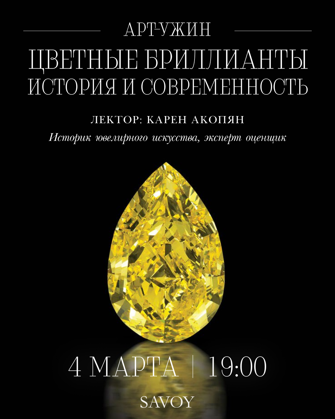 4 марта ресторан Savoy приглашает Вас в мир тайн и роскоши. Вы узнаете о камнях, оставивших след в истории, украшавших коронованных особ и устанавливавших рекорды на мировых аукционах.