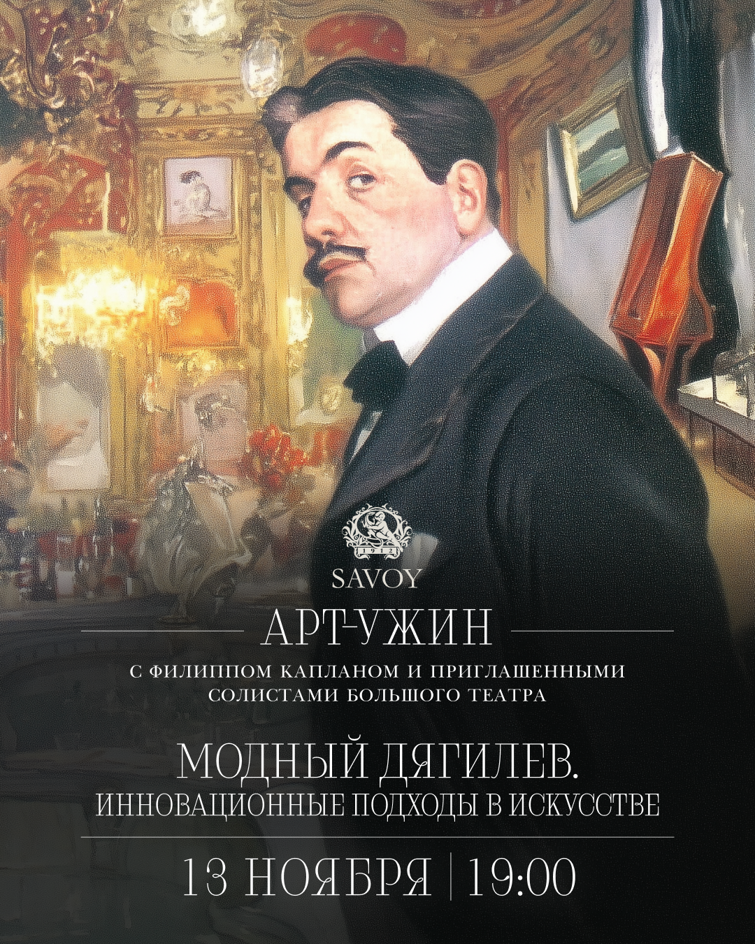 -Дух салона: Как в парижских салонах, где собирался цвет искусства, мы будем говорить о красоте и новаторстве. Филипп Каплан раскроет секреты дягилевского успеха: как он, выходец из русской провинции, стал законодателем мод в самом требовательном городе мира.