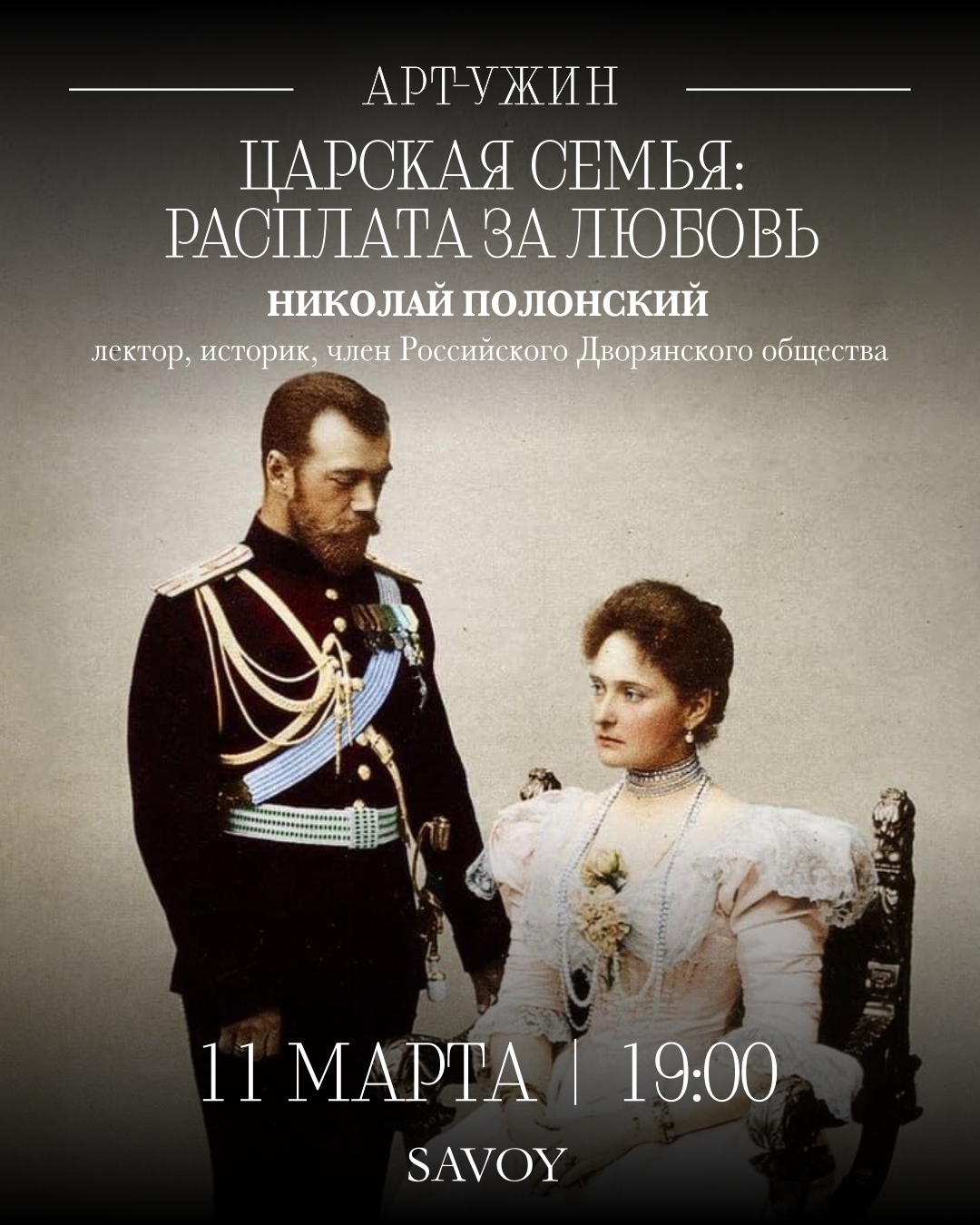 11 марта в 19:00 приглашаем Вас на вечер, где история становится осязаемой. Речь пойдет о семье последнего российского императора — без хрестоматийного глянца, но с уважением к правде.