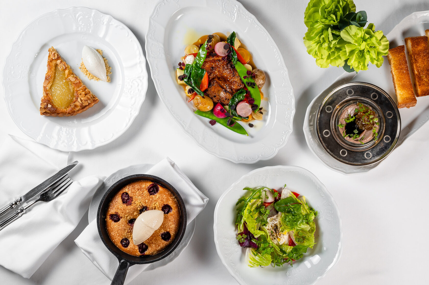 Каждое блюдо «Русского обеда» - своя маленькая история. Об агрономе Болотове, вырастившем при Екатерине II первые в России сладкие помидоры, - в салате из томатов и огурцов. О заповедных муромских лесах – в старинном местном рецепте картошки с грибами. О русском помещике Василии Левшине и вдохновленными его «Поварней» зелеными щами, где и свежая крапива, и шпинат, и щавель. Бренд-шеф Savoy легко сплетает между собой французское и русское: добавляет к камамберу свеклу с березовым бальзамиком, подает с ячневой кашей томленые в красном бордосском вине телячьи щеки, заправляет бархатистое велюте из тыквы с сельдереем и яблоками несладкой тыквенной халвой. И репа вновь становится модной в салате с арбузной редькой, маринованным перепелиным яйцом и русской гранолой из семян льна, подсолнечника, кедровый орех, а жаркое из цыпленка с молодыми овощами становится настоящей гастрономией в компании соуса из кислицы.