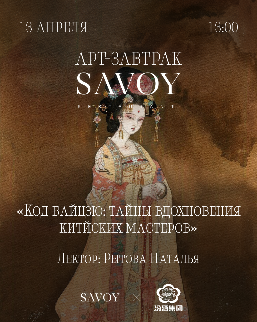 13 апреля в Каминном зале легендарного Savoy пройдет экзотический завтрак – о тайнах вдохновения китайских мастеров расскажут через историю байцю. Лектор Наталья Рытова проведет гостей от эпохи неолита с его ритуалами до пиров времен династии Тан, от аристократических застолий до современных чифанек. Самый крепкий спиртной напиток в мире за девять тысяч лет своего существования не только обзавелся своими легендами и обычаями, но и стал соавтором поэзии, живописи и каллиграфии великих мастеров. Глоток мягкого и ароматного байцю Фэньцзю поможет погрузиться в атмосферу великой страны и ощутить аутентичность современного Китая.